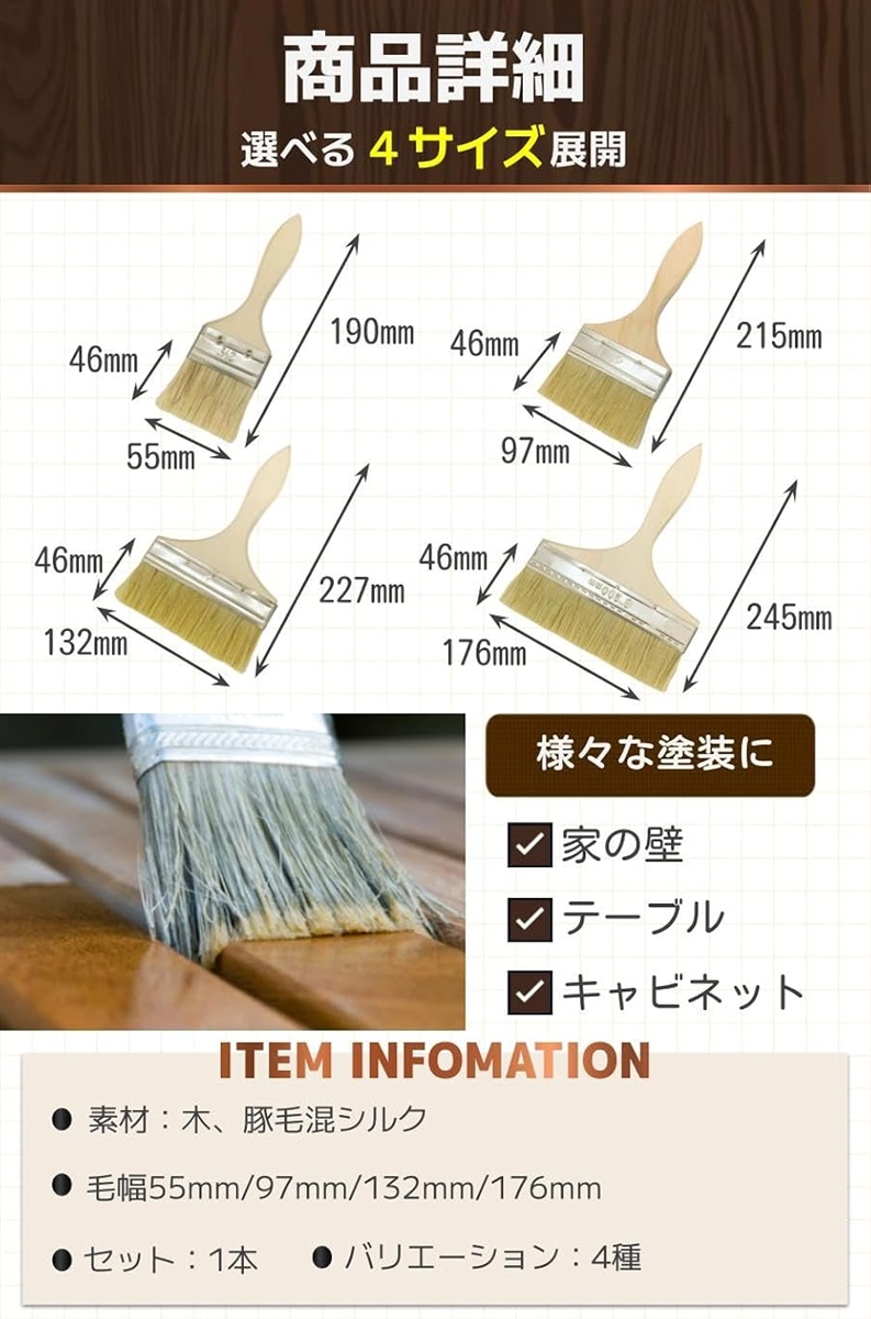 | 商品名 | 刷毛 ハケ 塗装 はけ ペンキ ペイント 豚毛 耐久性 木製 使いやすい 油性 水生 毛幅97mm |