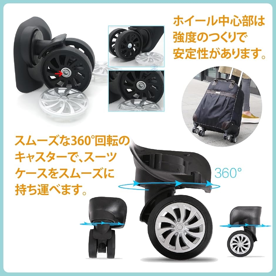 交換用キャスターは汎用性が高く、さまざまな種類のスーツケースに対応します。