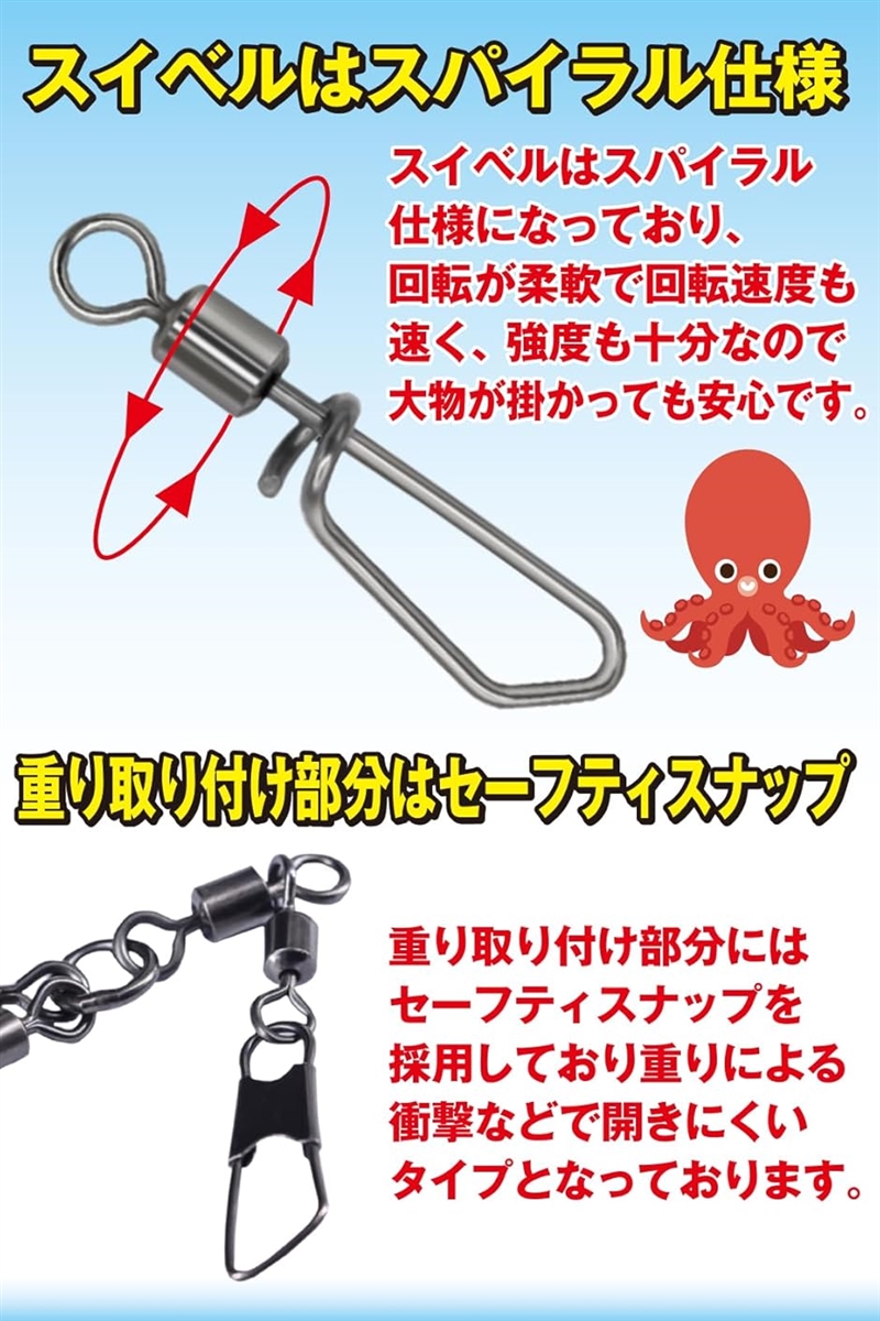 | 商品名 | タコエギスナップ タコエギ タコ釣り 蛸釣り仕掛け 40kg ダブル仕様 サルカン スイベル タコ釣り仕掛け タコ 20個セット |