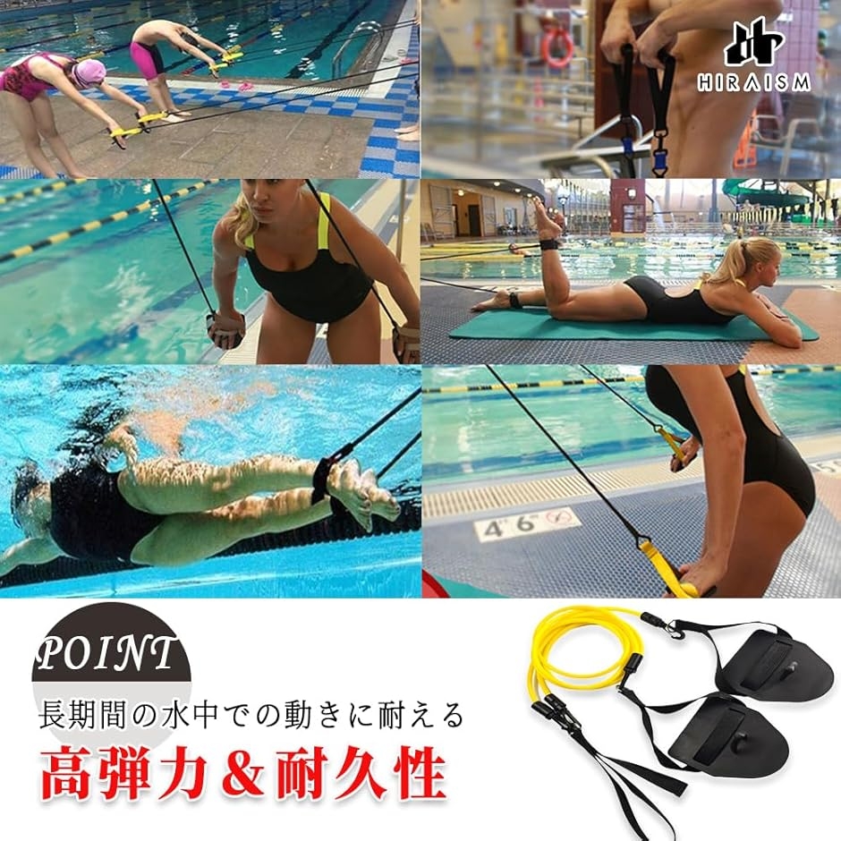 「スイミングトレーニングを次のレベルへ」水泳用の高弾力トレーニングチューブです。