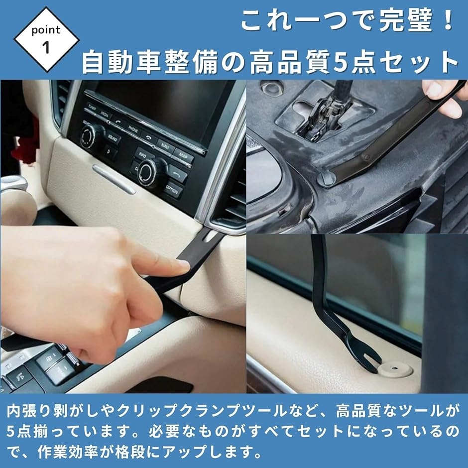 「内張りはがしセット:驚きの5点セットで愛車メンテナンスを簡単に。」 この内張り剥がしセットは、自動車メンテナンスに必要なツールがすべて揃った理想的なキットです。