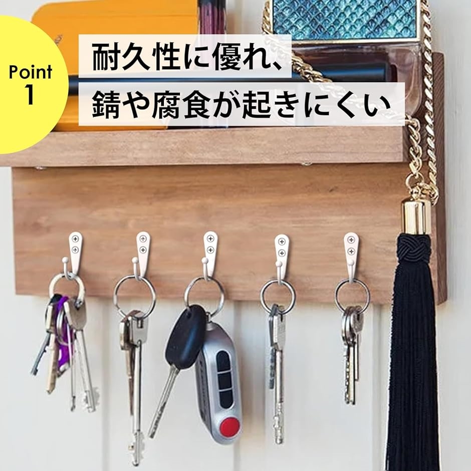 「丈夫な金属製フック」亜鉛合金製の壁掛けフックで、耐久性に優れ、錆や腐食が起きにくいので、どこでも安心して使えます。