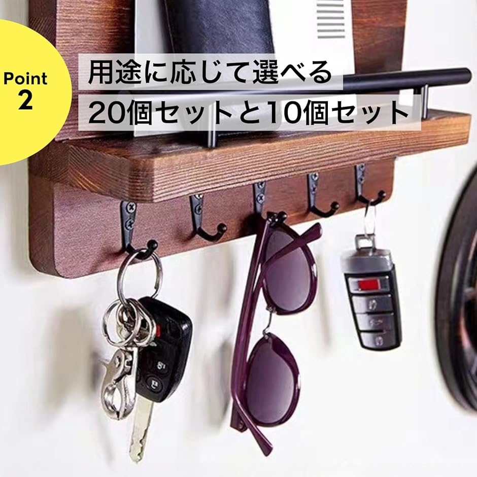 「たっぷり使える20個セット」玄関、洗面所、キッチン、寝室、オフィス、ガーデニングウォールなどさまざまな場所で、コート掛けや、帽子、カバン掛け、鍵、リード掛けなど、用途は自由自在です。