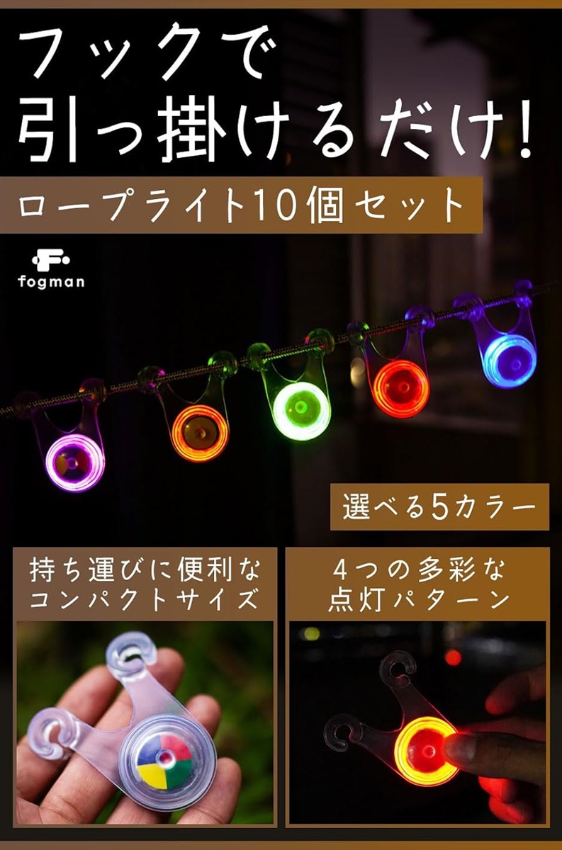 | 商品名 | ロープライト ライト ガイロープ キャンプ テント タープ アウトドア 10個セット グリーン |