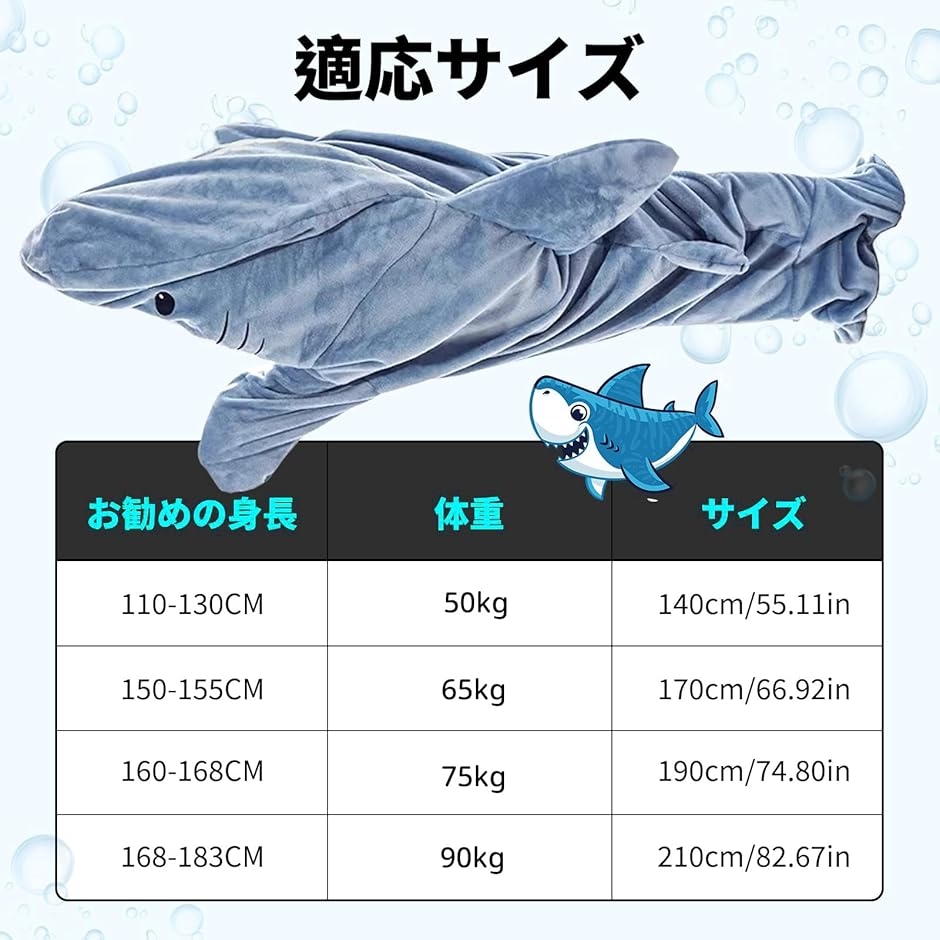 | 商品名 | サメ 寝袋 サメ 着ぐるみ 着る毛布 鮫 着る寝袋 サメ ぬいぐるみ 大人用 子供 サメウェアラブルブランケット サメ パジャマ ふわふわ 冷房対策 暖かい お誕生日 ギフト クリスマスプレゼント |