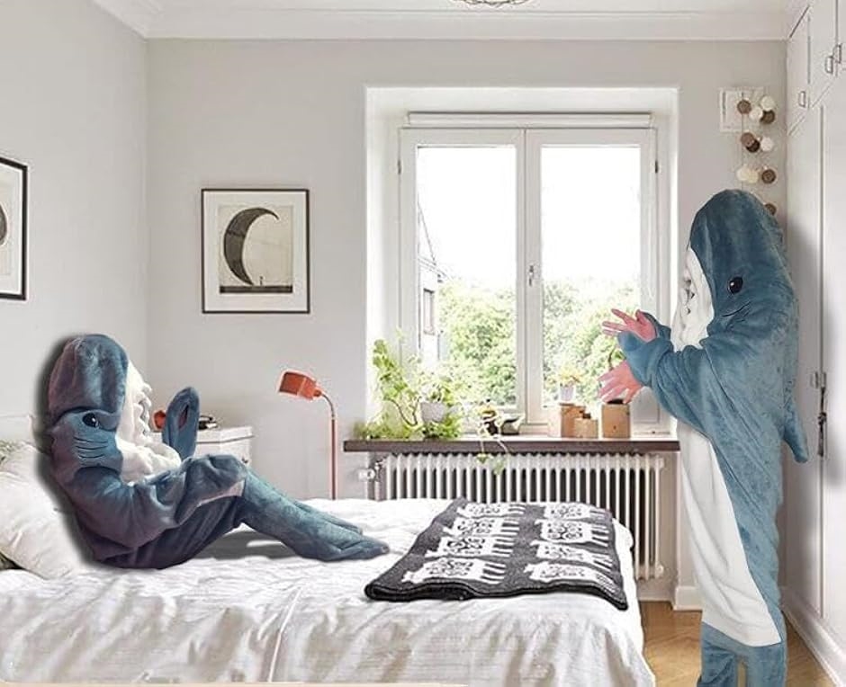 通常のブランケットよりも楽しい、シャークブランケットは足、足、頭、腕を包み込むので、体全体でブランケットの暖かさを感じられ、手を外に出すこともできます。