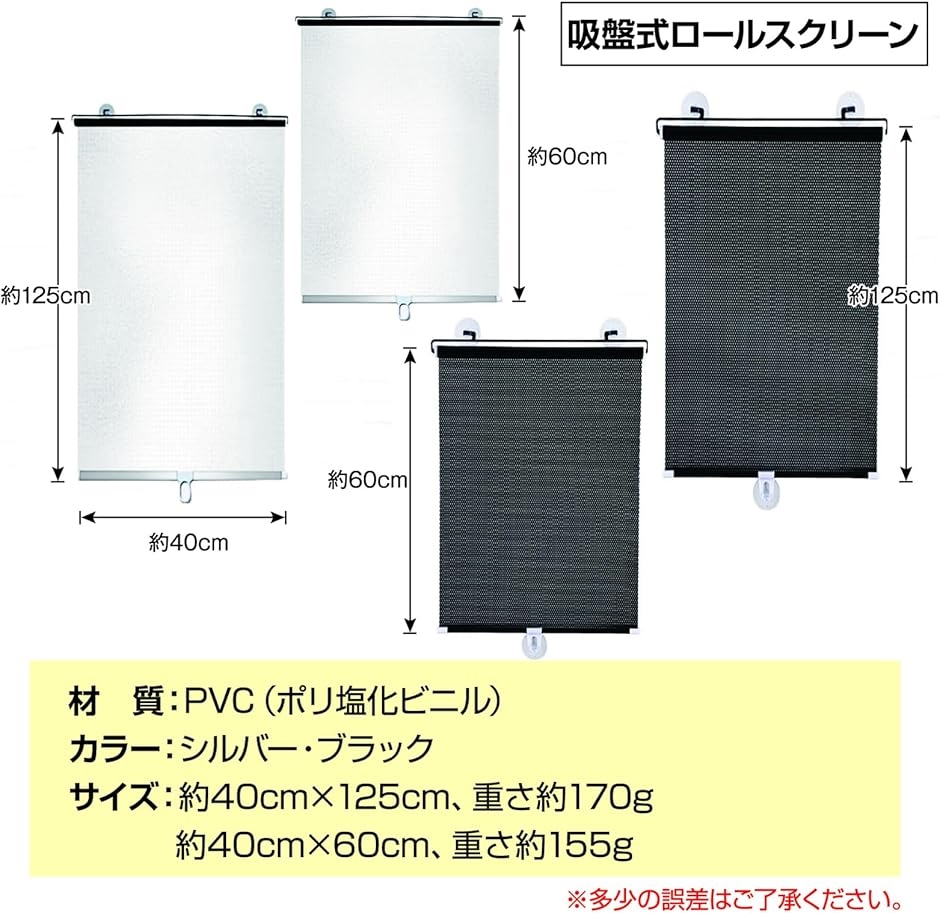 | 商品名 | 吸盤式 ロールスクリーン ロールカーテン 目隠し サンシェード 穴あけ不要 ブラック 60cm |