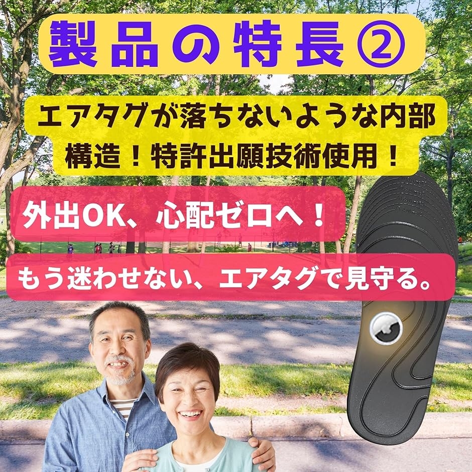 | 商品名 | 見つける君インソール エアタグポケット付き Airtag ホルダー 徘徊防止 GPS介護用品 |