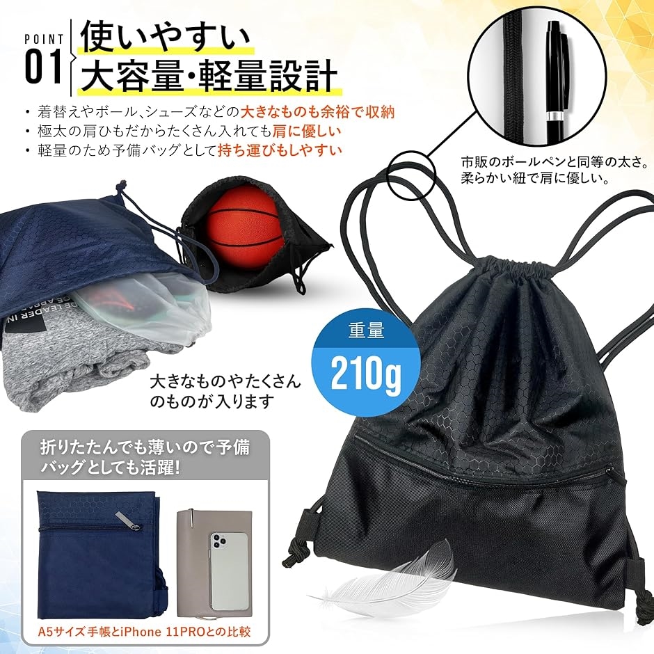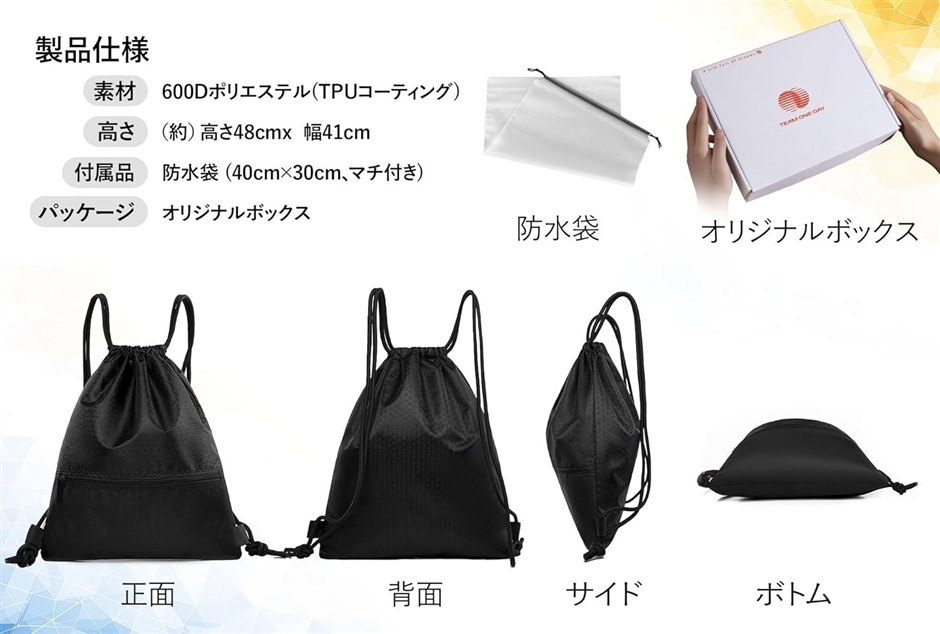 | 商品名 | TeamOneDay 整理収納アドバイザー監修 スポーツ ナップサック 防水袋付き 大容量 プールバッグ ジムバッグ リュックサック 防水バッグ |