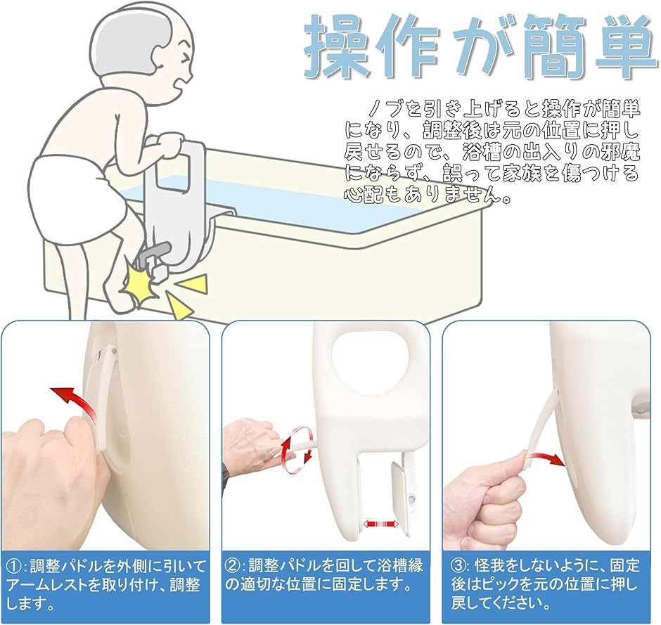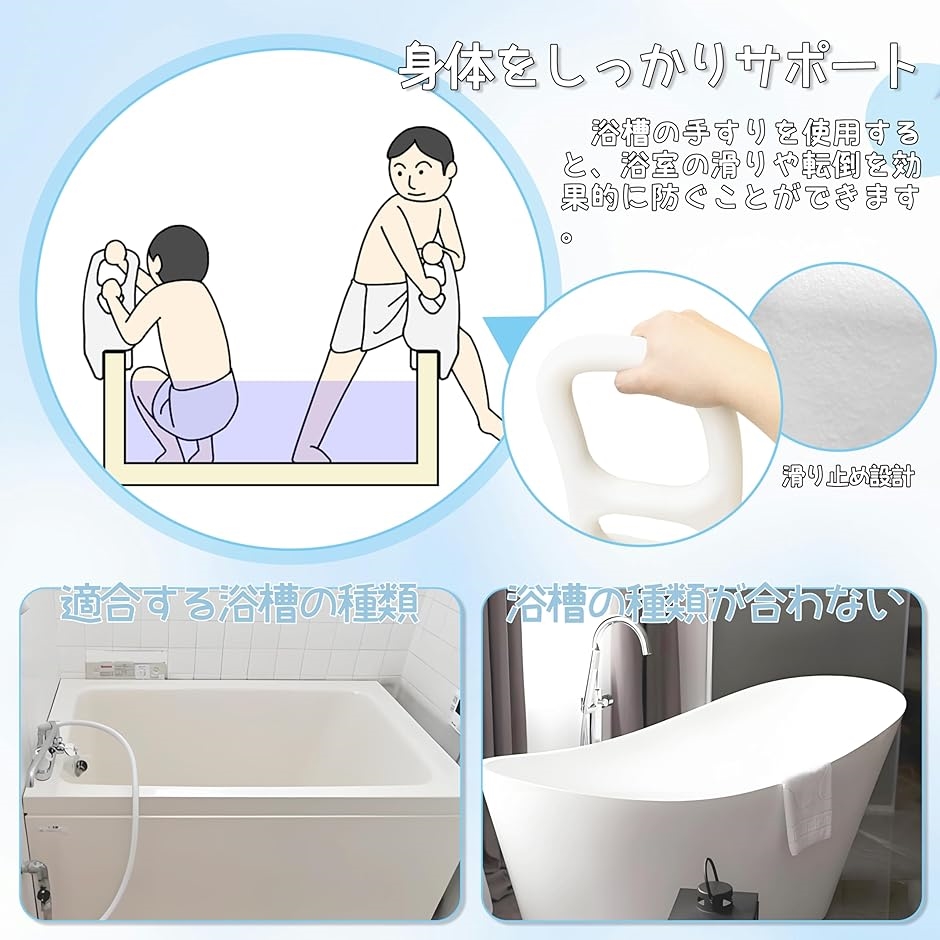 | 商品名 | お風呂 手すり 浴槽手すり 入浴介助 介護用品 耐久性 防錆仕様 滑り止め加工 冬でも冷たくない 折り畳み ノブで傷防止 高齢者向け バリアフリー 介護用グッズ 取り付け簡単 耐荷重 抗菌加工 浴室リフォーム |