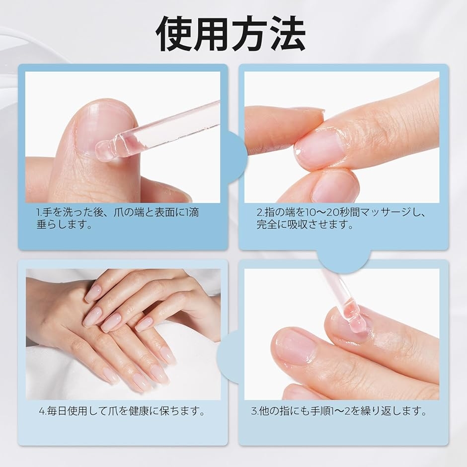 4. オイルを爪と皮膚に優しくマッサージし、完全に吸収させます。