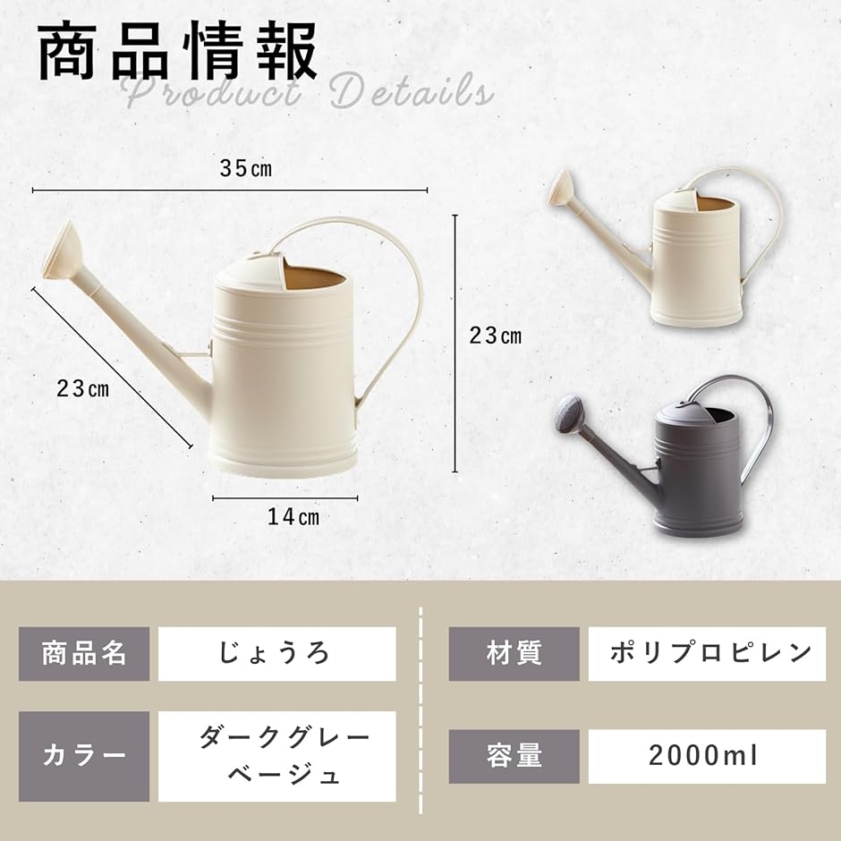 | 商品名 | じょうろ おしゃれ 北欧風 小型 ジョーロ ガーデニング 水やり 散水 ジョウロ 園芸 2L |