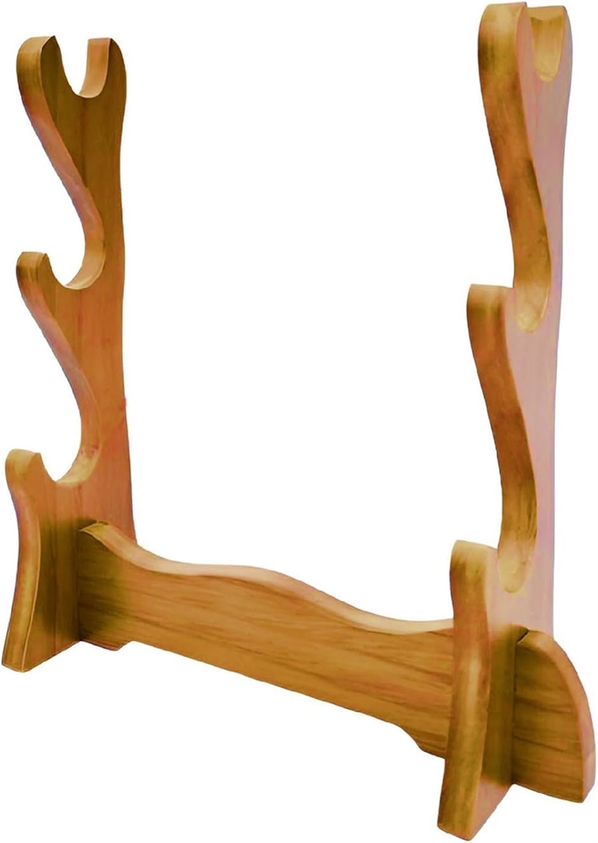 | 商品名 | 刀置き 刀掛け台 木製 ミニ刀置台 短刀 小刀 脇差 ディスプレイスタンド 茶色 ブラウン3本掛け |