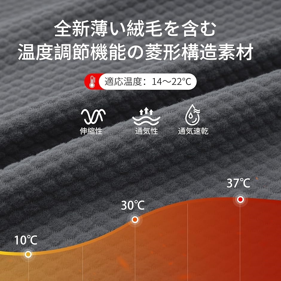 「通気性裏起毛素材」外部は防風生地、裏地はは暖かい裏起毛素材で適度な保温力を持ち、素早く汗を吸水拡散して素肌を常に乾いた状態に保ちます。