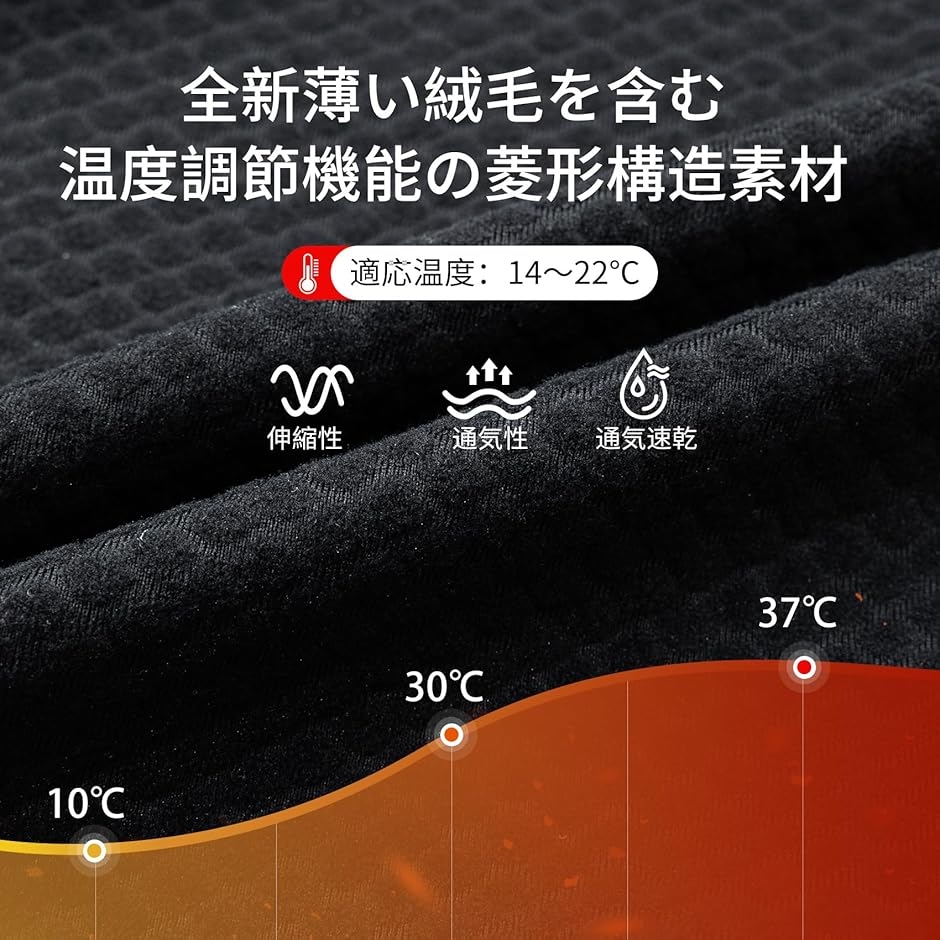 「通気性裏起毛素材」外部は防風生地、裏地はは暖かい裏起毛素材で適度な保温力を持ち、素早く汗を吸水拡散して素肌を常に乾いた状態に保ちます。