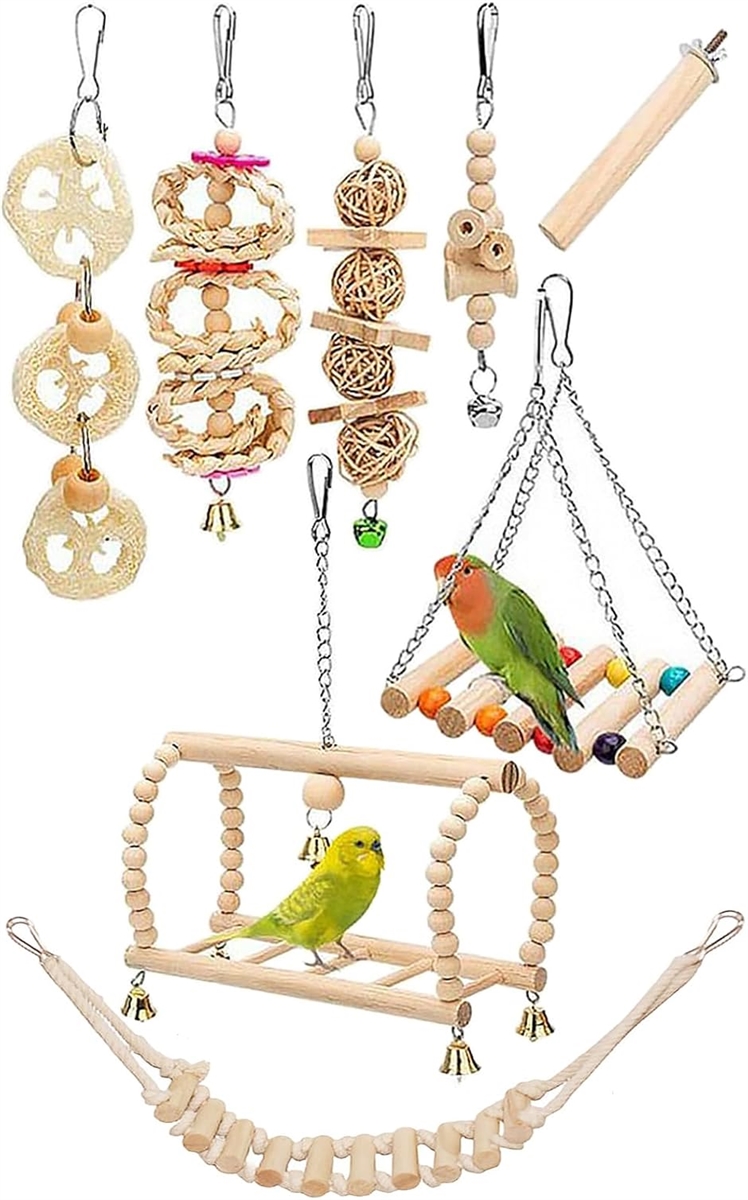 | 商品名 | 鳥 おもちゃ 木製 フォージングトイ グッズ セキセイ インコ 止まり木 ブランコ バード トイ オウム 文鳥 小鳥 グッズ 8点 セット |