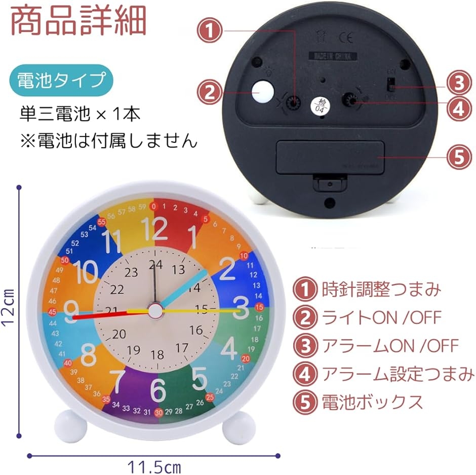 | 商品名 | 目覚まし時計 子供 置き時計 知育 アナログ 小型 学習 カラフル 大音量 可愛い ライト付き |