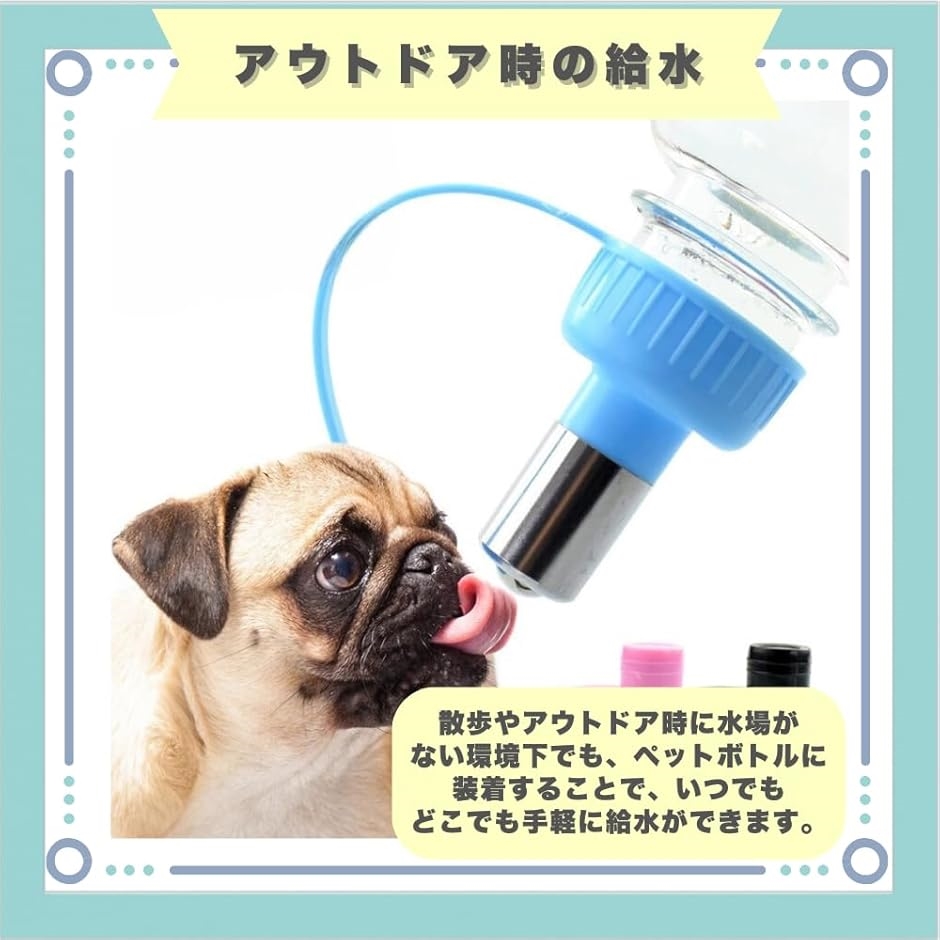 「アウトドア時の給水」散歩やアウトドア時に水場がない環境下でも、ペットボトルに装着することで、いつでもどこでも手軽に給水ができます。