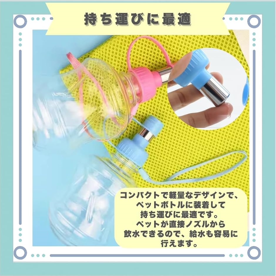 「持ち運びに最適」コンパクトで軽量なデザインで、ペットボトルに装着して持ち運びに最適です。