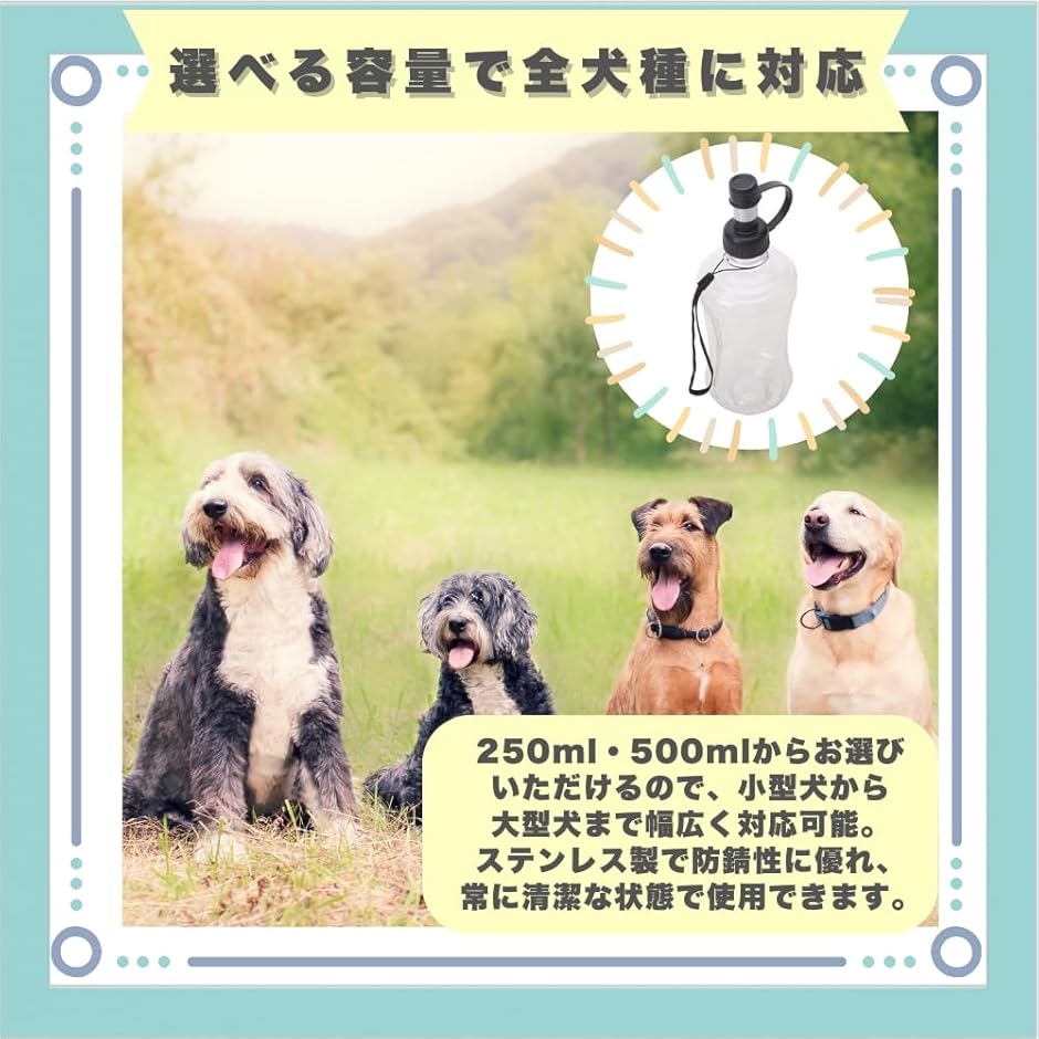 「選べる容量で幅広い犬種に対応」250ml・500mlからお選びいただけるので、小型犬から大型犬まで幅広く対応可能。