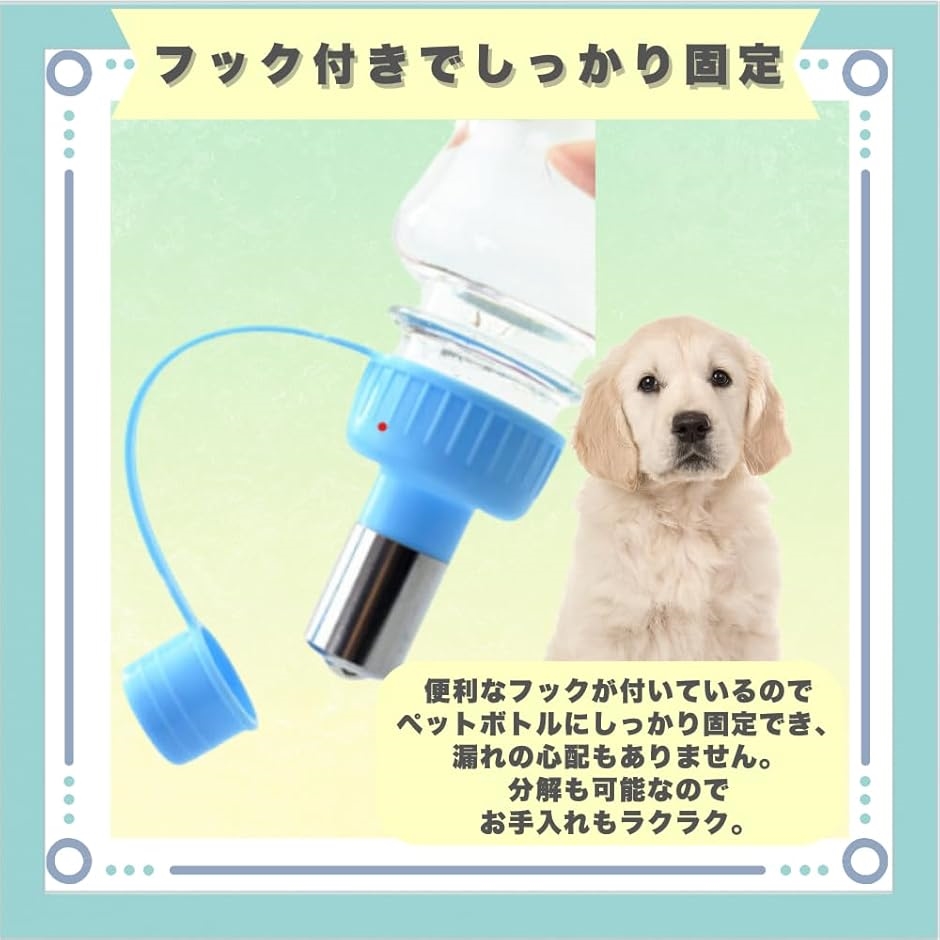 「フック付きでしっかり固定」便利なフックが付いているのでペットボトルにしっかり固定でき、漏れの心配もありません。