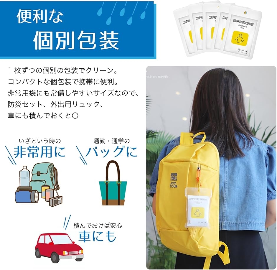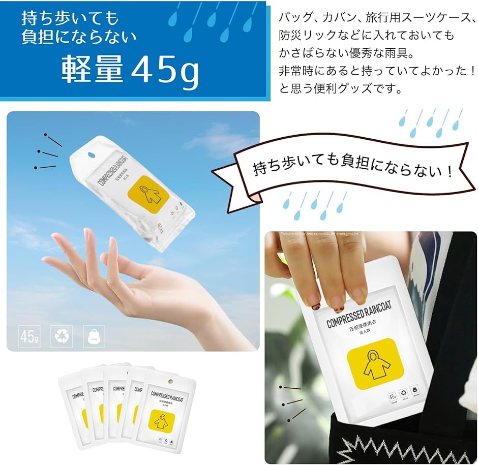 「軽量」 1つ45gと軽量なので、バッグ、カバン、旅行用スーツケース、防災リックなどに入れておいてもかさばらない優秀な雨具。