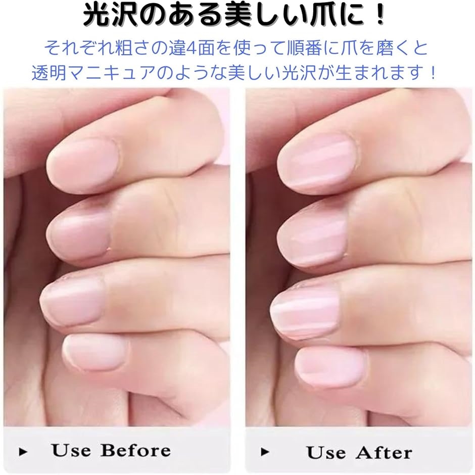 それぞれ粗さの違う4面を使って順番に爪を磨くことで自然な輝きが生まれます。