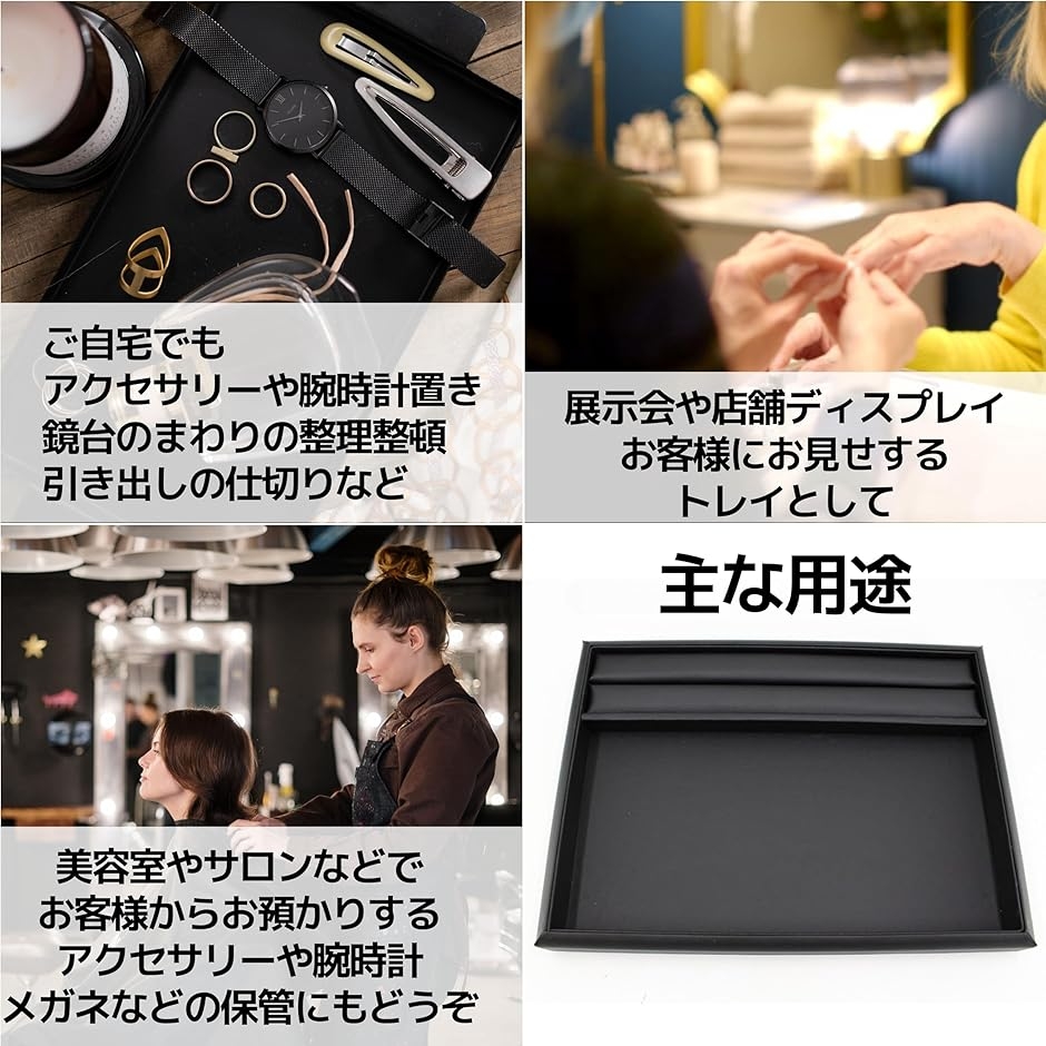 また、ご自宅でもアクセサリーや腕時計置き、鏡台のまわりの整理整頓、引き出しの仕切りなど色々とお使い頂ける便利なトレイです。