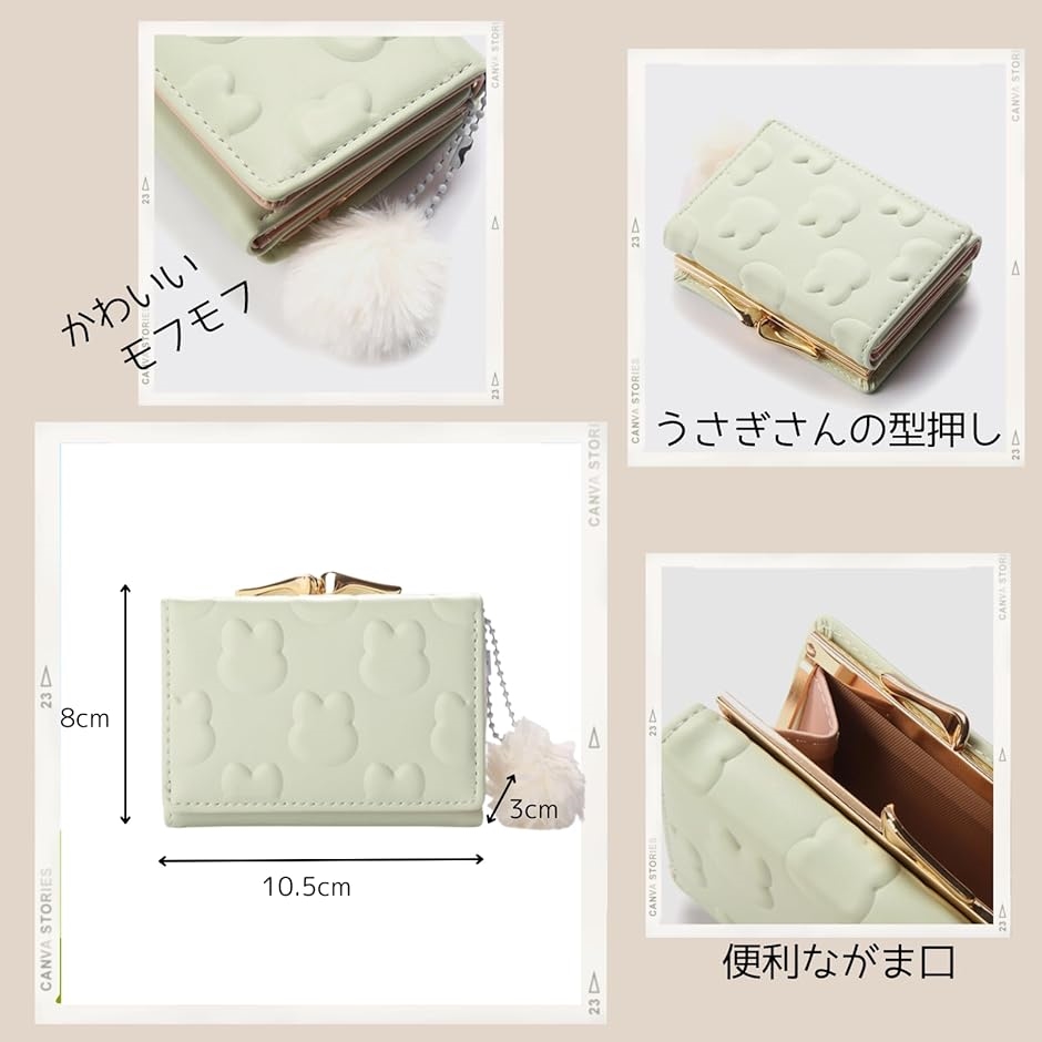 | 商品名 | がま口 財布 3つ折り コンパクト 小銭入れ 女の子 チャーム レディース 子供 プレゼント うさぎ |