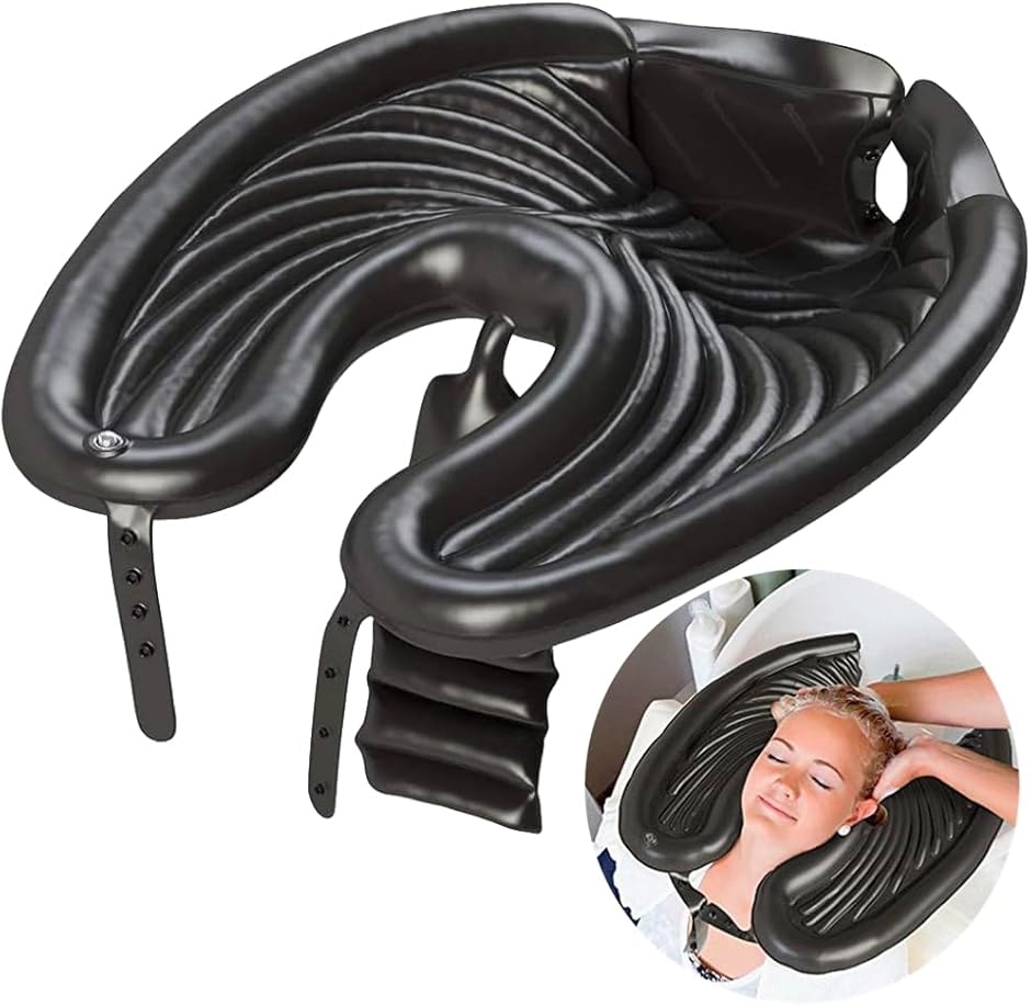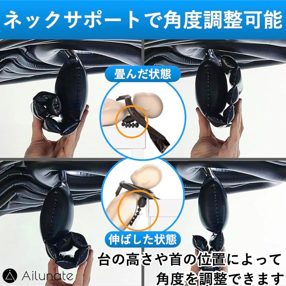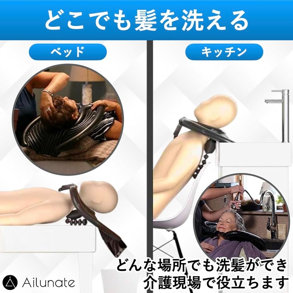 「エアバッグで首や頭を優しく支える」空気で膨らんだエアバッグが首や頭を優しく支え、洗髪を快適に行えます。
