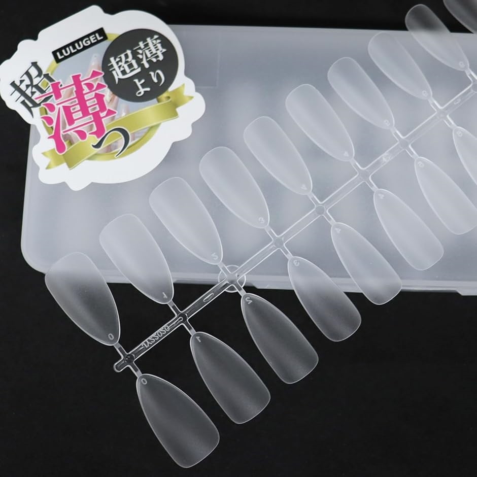 LULUGELのネイルチップ(ロング・ポイント型)は、根元が極薄で段差が目立ちにくく、自然なフィット感を実現。