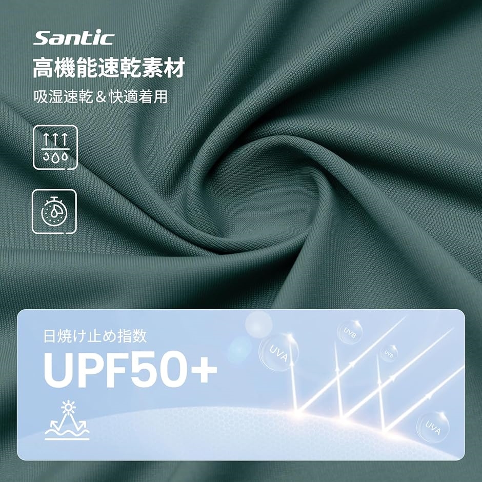 UPF50+の高防晒機能:紫外線から肌を保護するUPF50+素材を採用。