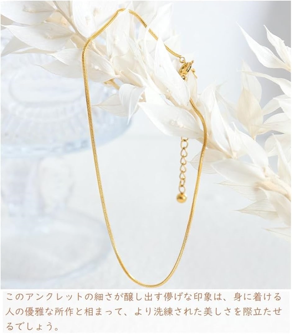 | 商品名 | アンクレット レディース つけっぱなし シンプル 足元を優しく彩る絹の光を表現したデザイン ステンレス チェーン 21cm +5cm 調整可能 ゴールド |