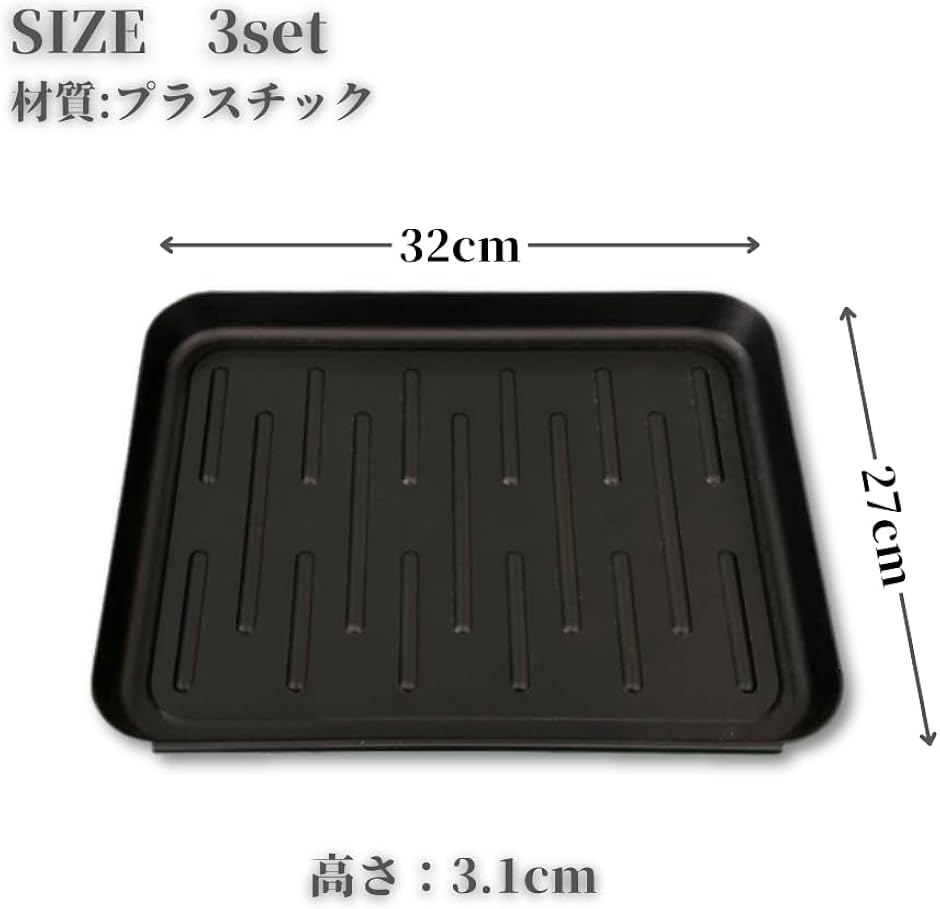 「商品内容」トレー3個セット、本体サイズ:幅35cm、高さ3.1cm、奥行き27cm、材質:プラスチック *サイズ詳細は商品画像をご確認ください。