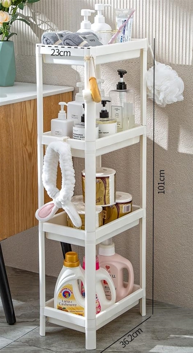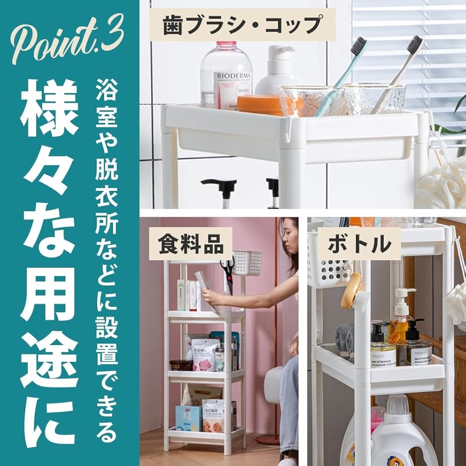 浴室や脱衣所などに設置して洗剤・詰め替えパウチ・タオル・洗顔料・歯ブラシなど様々なアイテムを1ヶ所にまとめて保管できる収納ラックです。