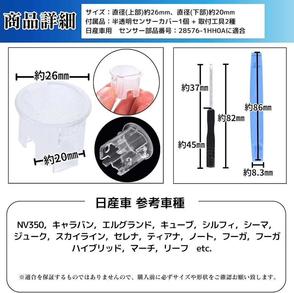 サイズ:直径(上部)約26mm、直径(下部)約20mm 付属品:半透明センサーカバー1個 + 取付工具2種