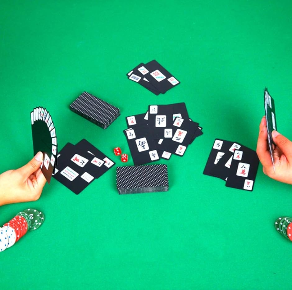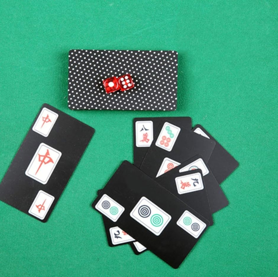 | 商品名 | 麻雀ゲーム 麻雀 カード プラスチック 収納袋 サイコロ2個付き カード麻雀 卓上ゲーム カードゲーム 麻雀カード+サイコロ+カードスタンド+点棒セット |