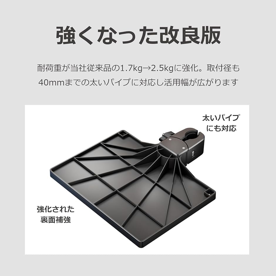 取付径も40mmまでの太いパイプに対応し活用幅が広がります。