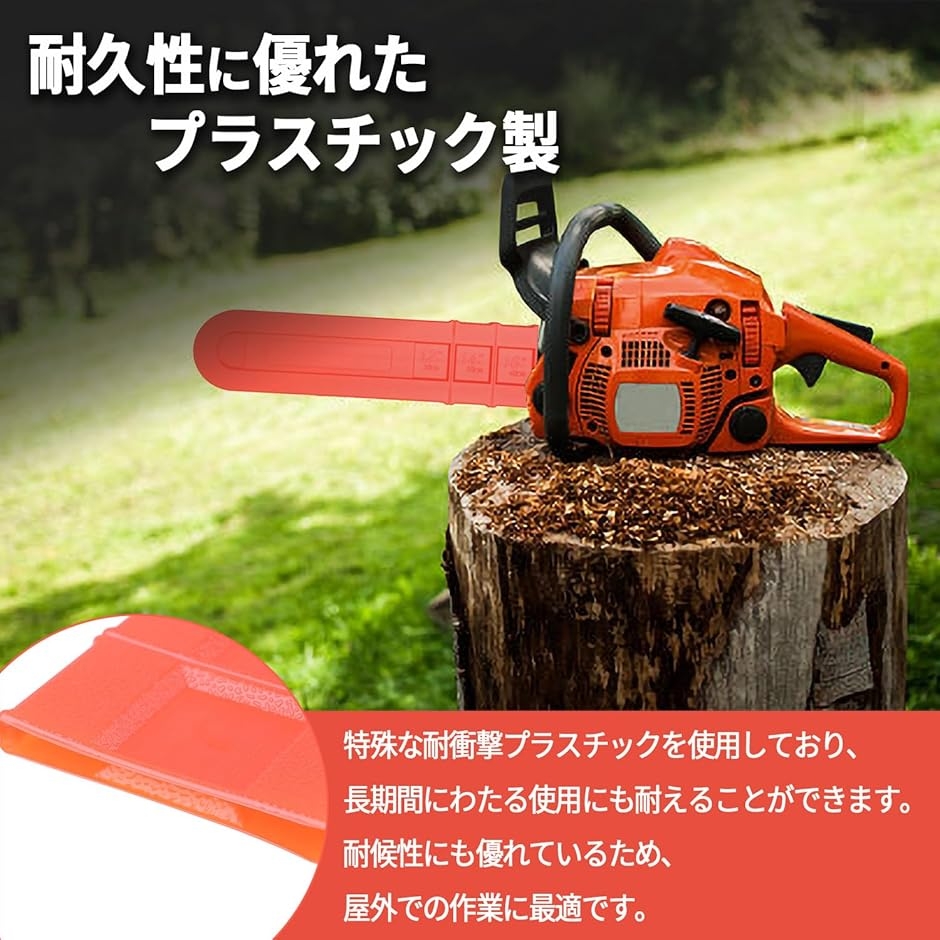 耐久性のあるプラスチック製: このチェーンソーカバーは、特殊な耐衝撃プラスチックを使用しており、長期間にわたる使用にも耐えることができます。