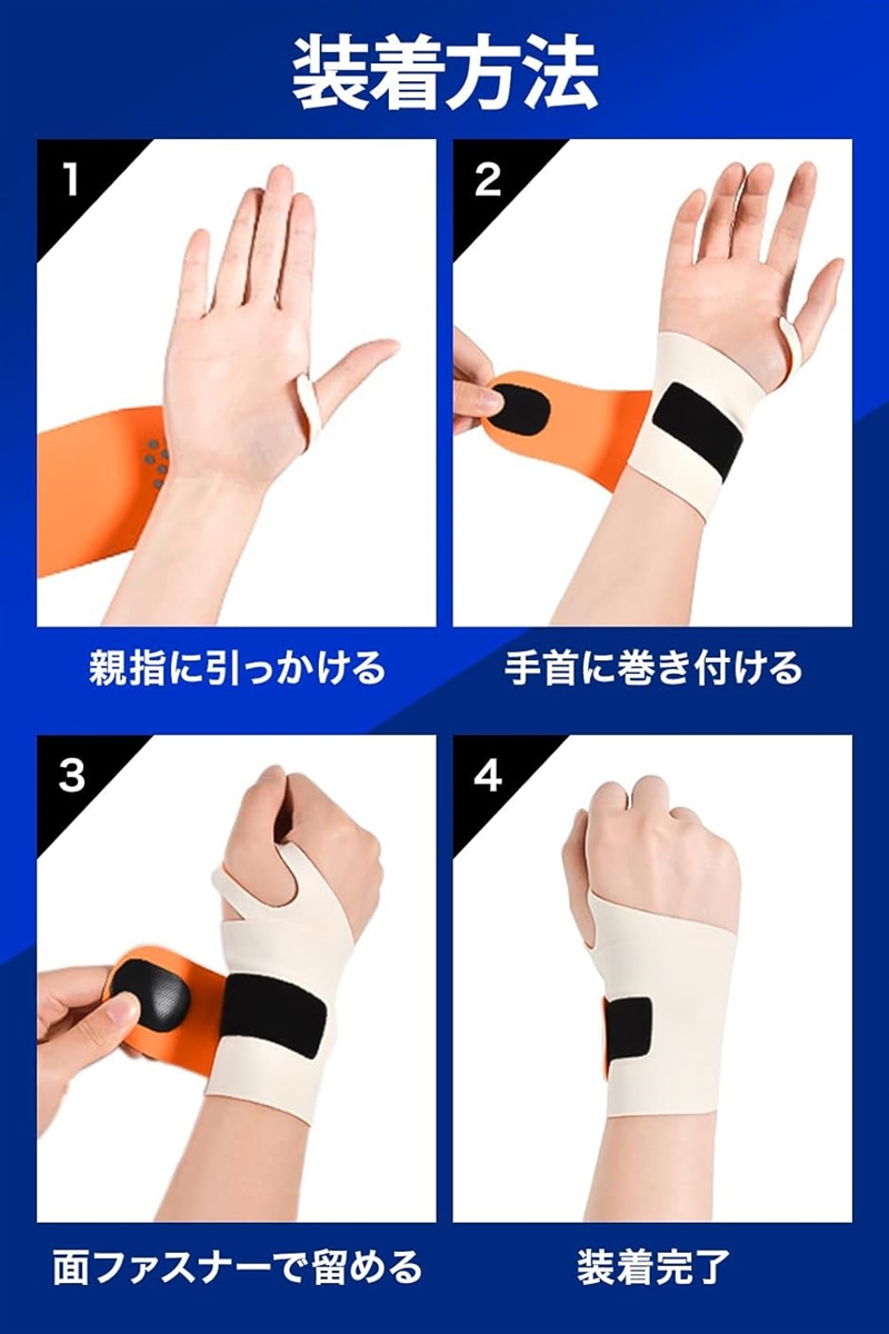 「 巻きやすい 」 親指にかけて巻くだけで簡単に装着できます。