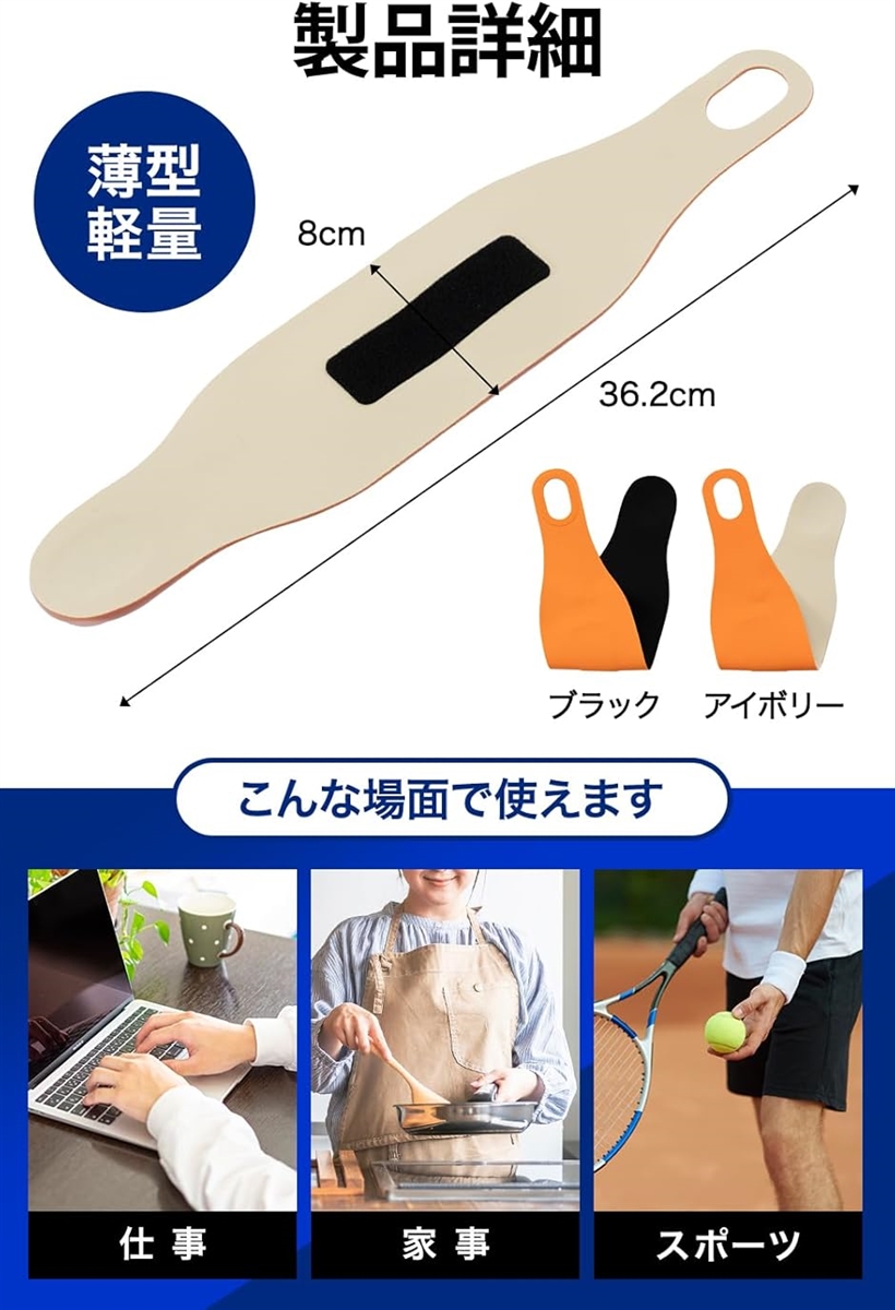 「 手首サポーター 」 可動域を制限することで手首が軽くなり、負担のかかる家事や仕事など日常生活の運動をサポートします。