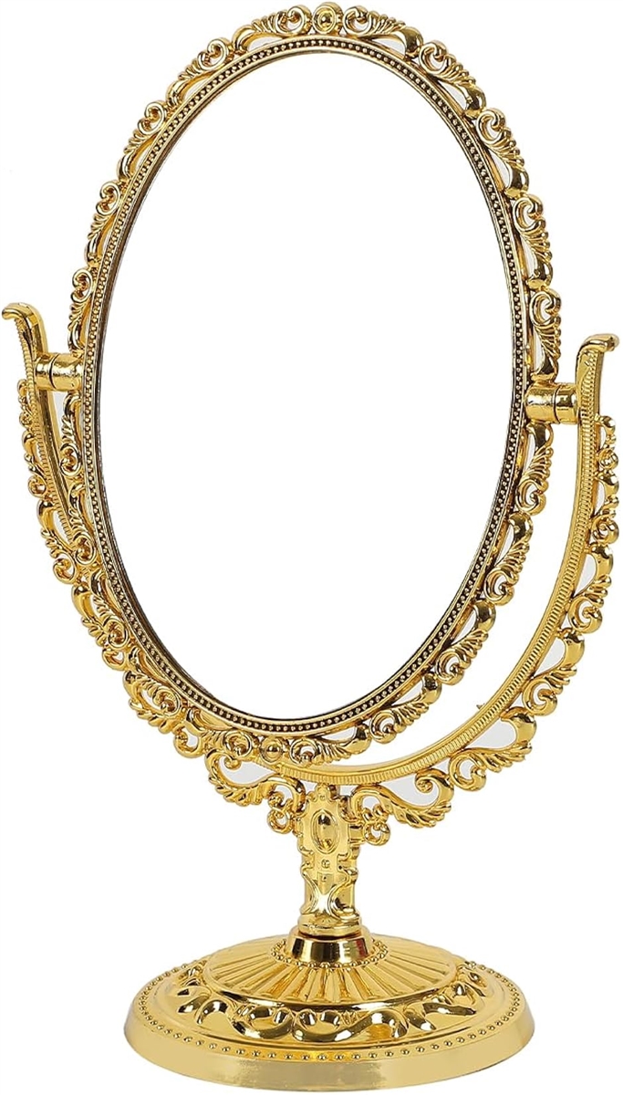 | 商品名 | 卓上 ミラー 上品 エレガント ゴージャス デザイン かわいい スタンド 化粧鏡 置き鏡 360度回転 メイク 鏡 おしゃれ アンティーク デスク 机 ゴールド |