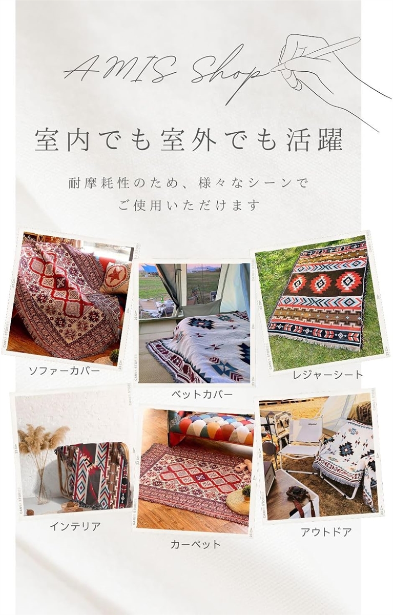 自由奔放な生活を送るジプシーのファッションや民族衣装を取り入れたブランケットでどんなシーンにも活用できます。