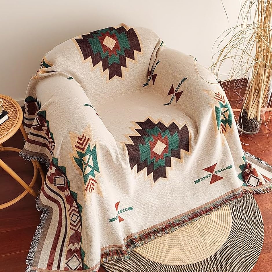 | 商品名 | エルパソ ブランケット マルチ ラグ オルテガ柄 幾何学模様 コットン ブラケットカバー 軽量 旅行 90x180 B 180cmx90cm |