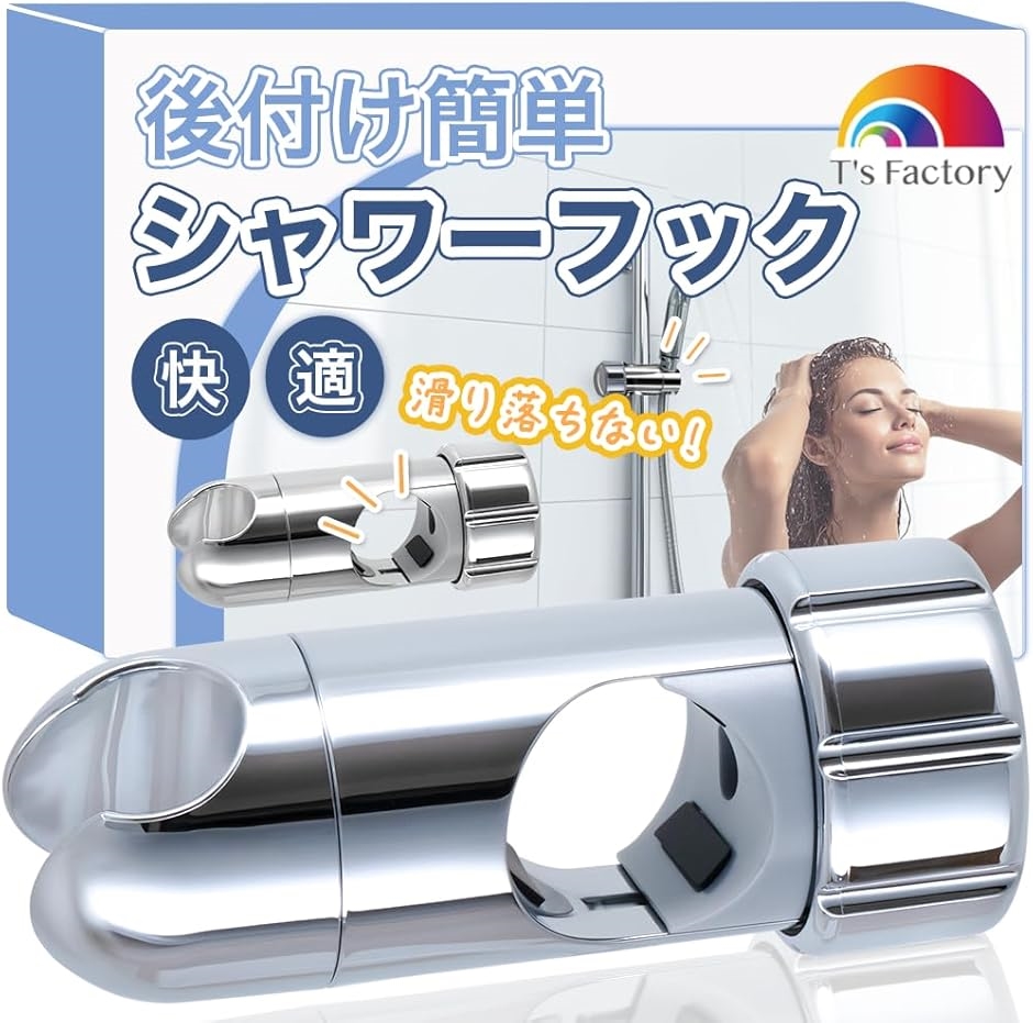 簡単取り付け、既存のスライバーを取り外す事なく設置が可能なシャワーフックです 丁寧な取付方法の日本語動画説明付きですので、DIYが苦手な女性の方でも簡単に取付可能です。