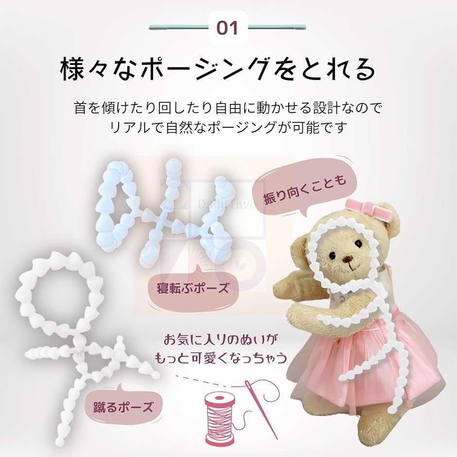 内部に入れ込むことで骨組みの役割を果たし、自由にポーズを取らせることが可能なので、オリジナルの可動ぬいぐるみを作ったり、推しぬいをカスタマイズして楽しむことができます。