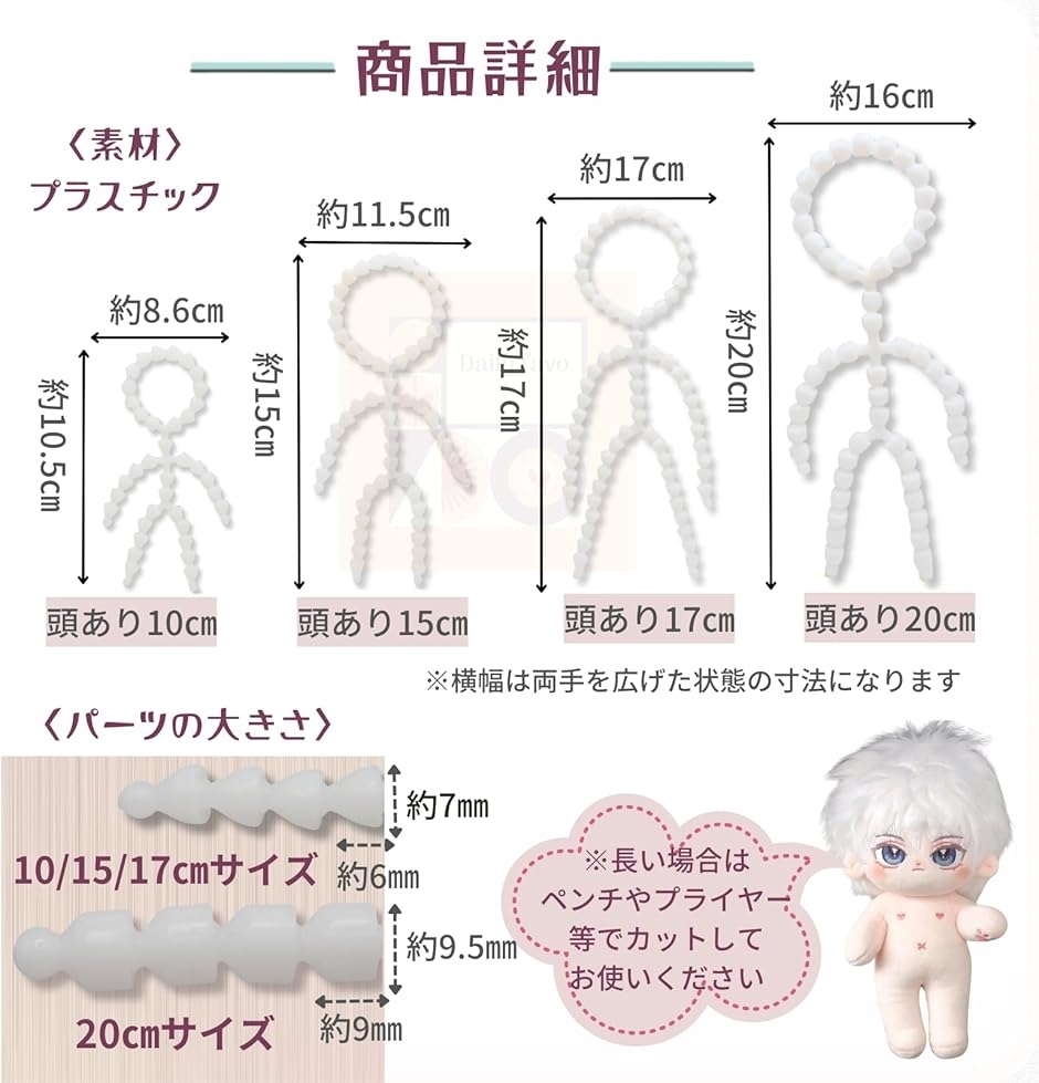 | 商品名 | トイスケルトン 4個セット ぬいぐるみ 骨 骨組み 骨格パーツ 可動式 人形 手作り カスタム ぬい活 推しぬい |