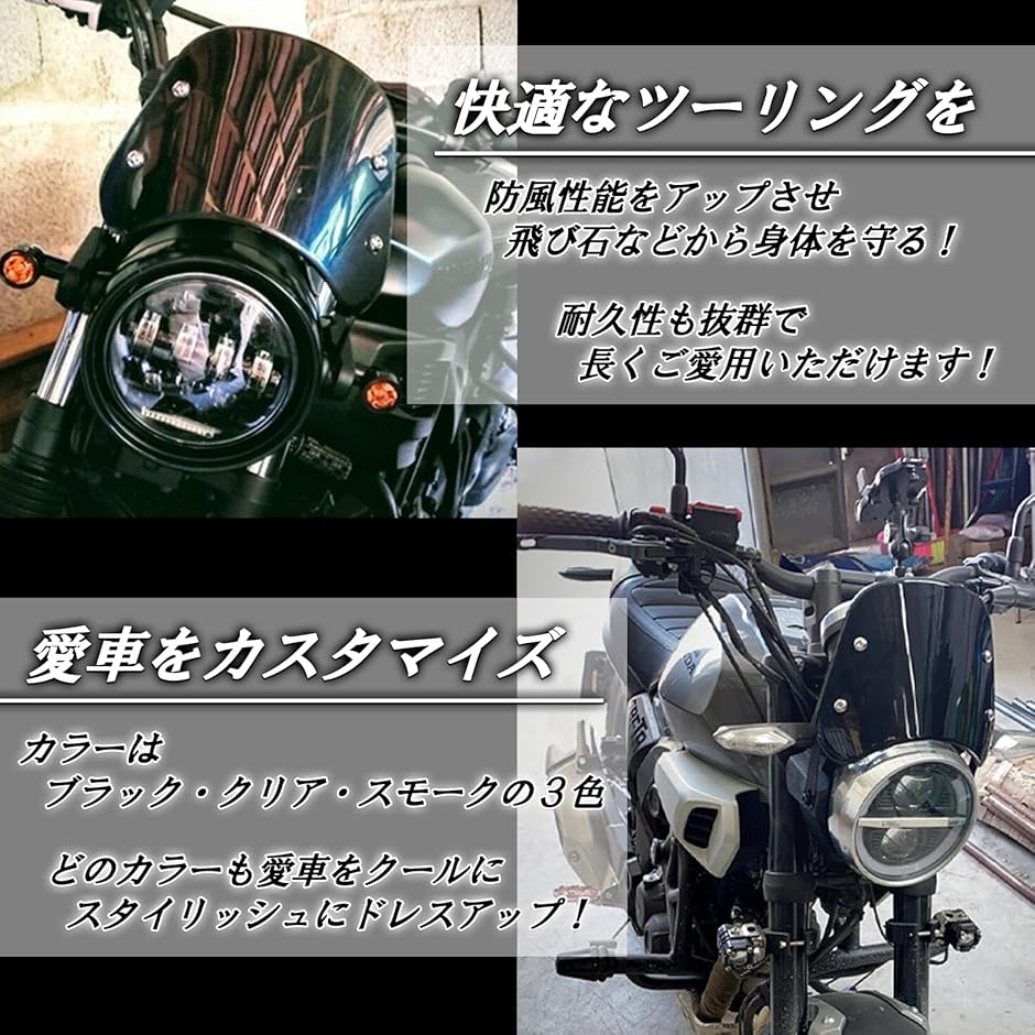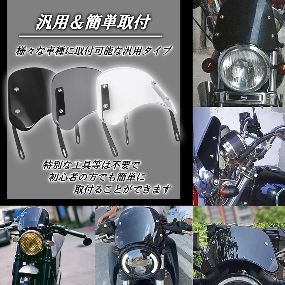 | 商品名 | 汎用 バイク スクリーン 防風 ウインド シールド 金具付 ライトカウル メーター 丸目 ライト バイザー オートバイ |