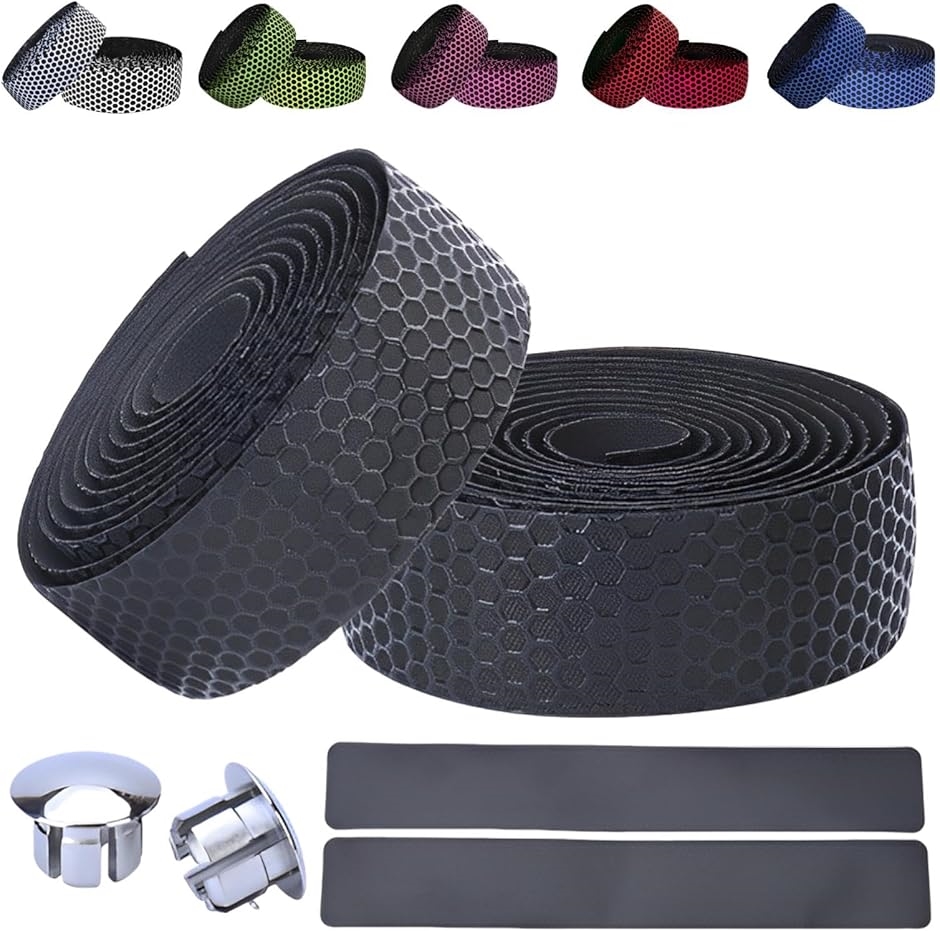 「商品特徴」(1)取り付け方法簡単.:裏面がシールなので工具不要で使用可能/(2)快適な握り心地:滑り止め効果により抜群のグリップ力/(3)汎用性抜群のテープ:自転車・釣り竿・椅子の肘掛けなど多用途/(4)嬉しい付属品付き:エンドキャップとエンドテープ付き。