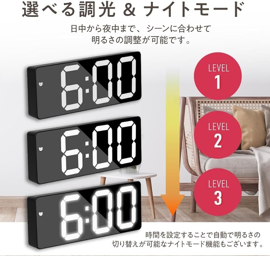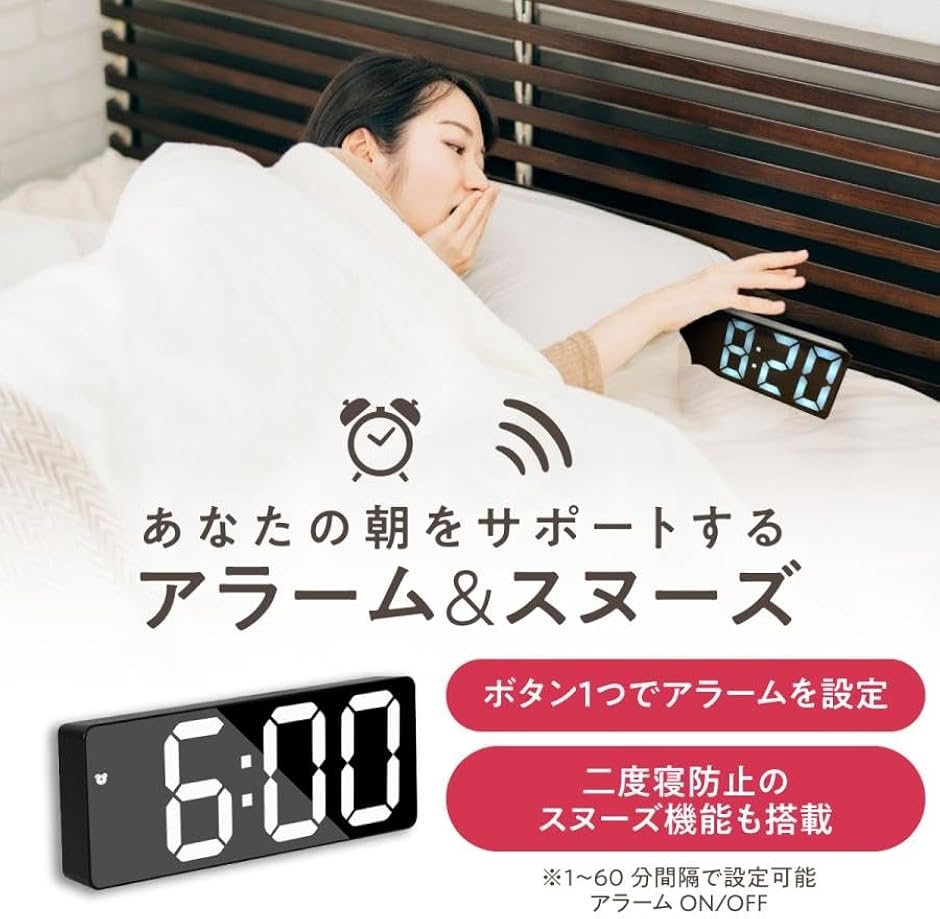 インテリアに合わせて 暮らしに寄り添うLED時計 シンプルなデザインで高機能なLEDデジタル時計 時計の気になるカチカチ音もデジタルなら静かなのも魅力的。